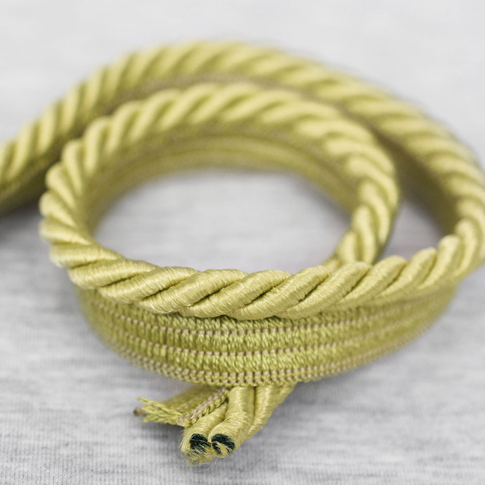 Dekoracyjna wypustka w formie skręconego sznurka, wykonana z włókien satynowych. Doskonała do wykończenia poduszek lub obić mebli. Szerokość 2 cm.