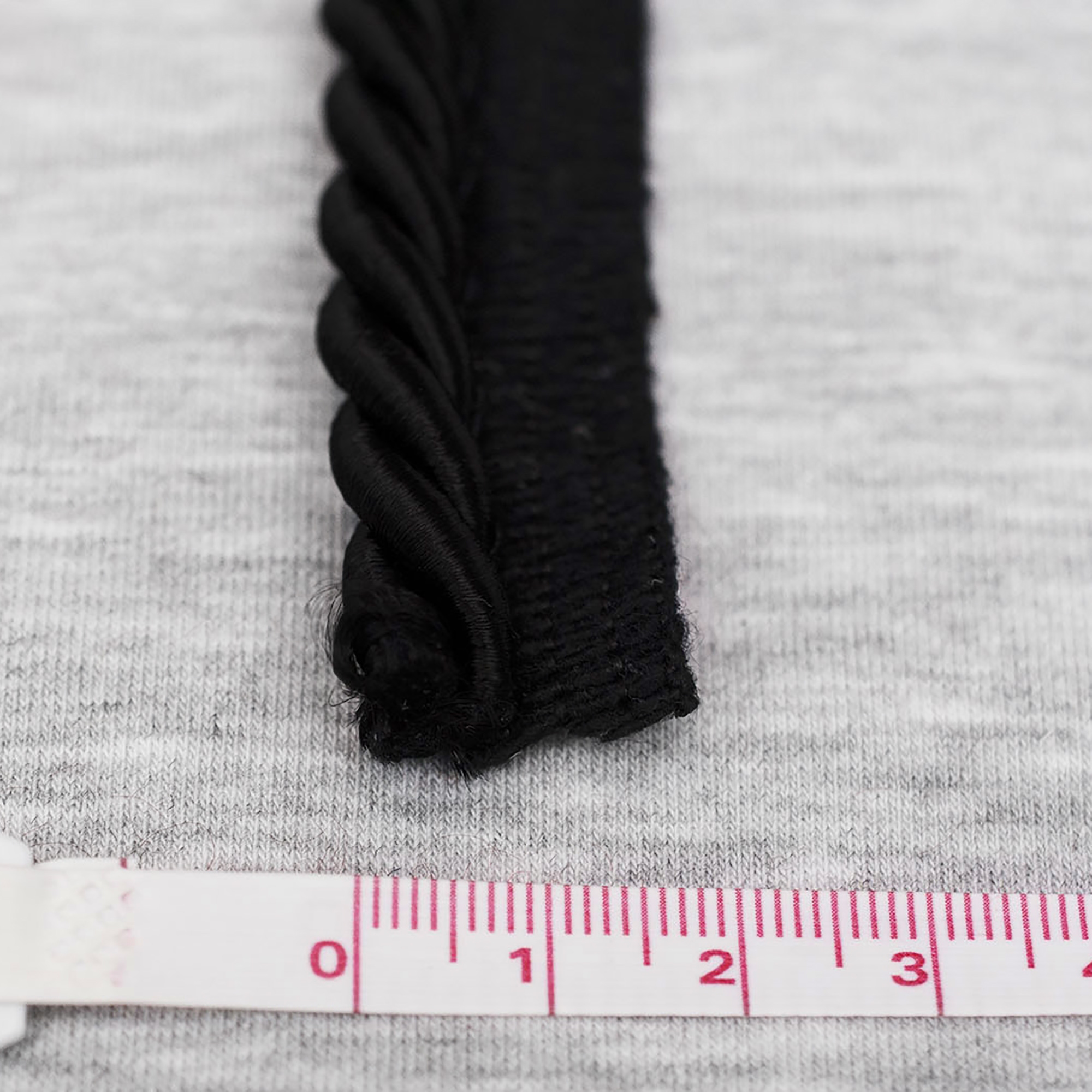 Dekoracyjna wypustka w formie skręconego sznurka, wykonana z włókien satynowych. Doskonała do wykończenia poduszek lub obić mebli. Szerokość 2 cm.