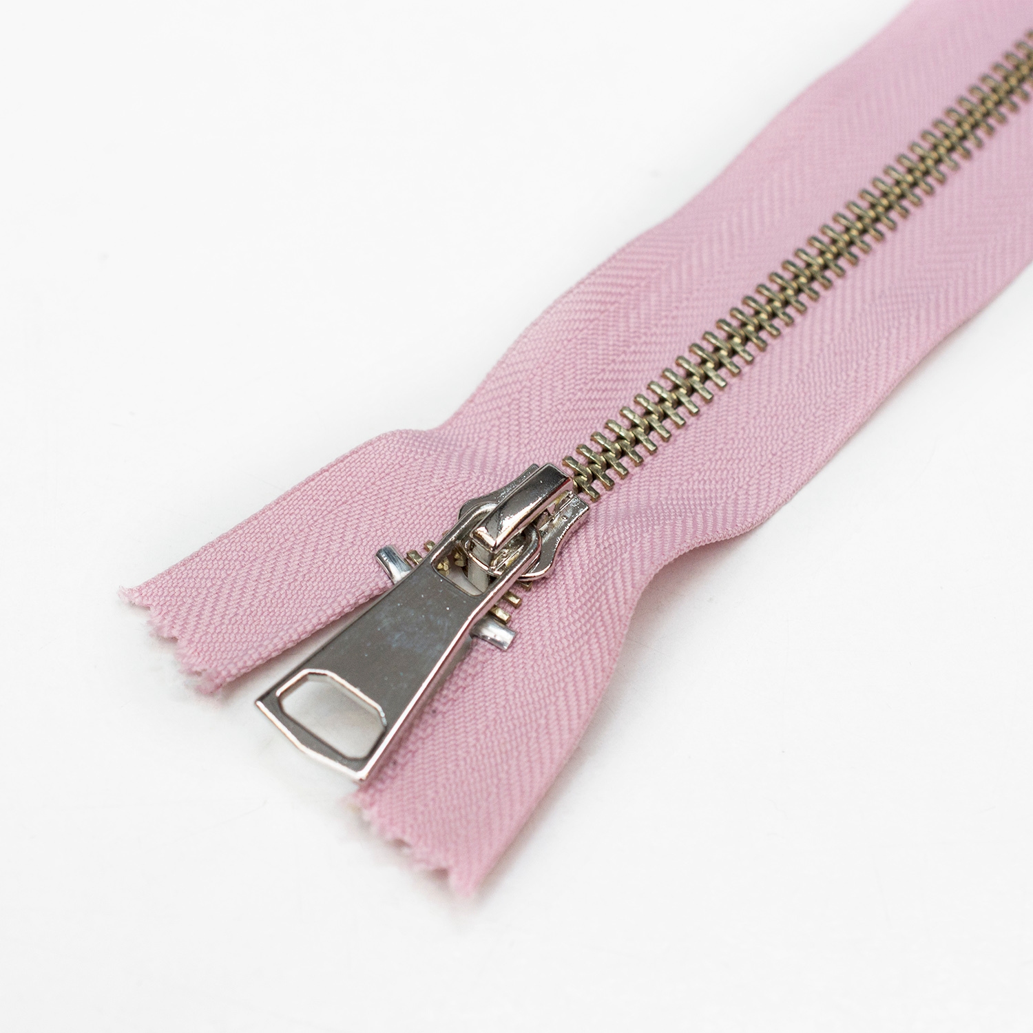 Metalowy zamek o długości 14 cm. Wykonany z bawełnianej taśmy oraz metalowych ząbków o szerokości 0,6 cm. Doskonale sprawdzi się przy wykończeniu bluz oraz kurtek.